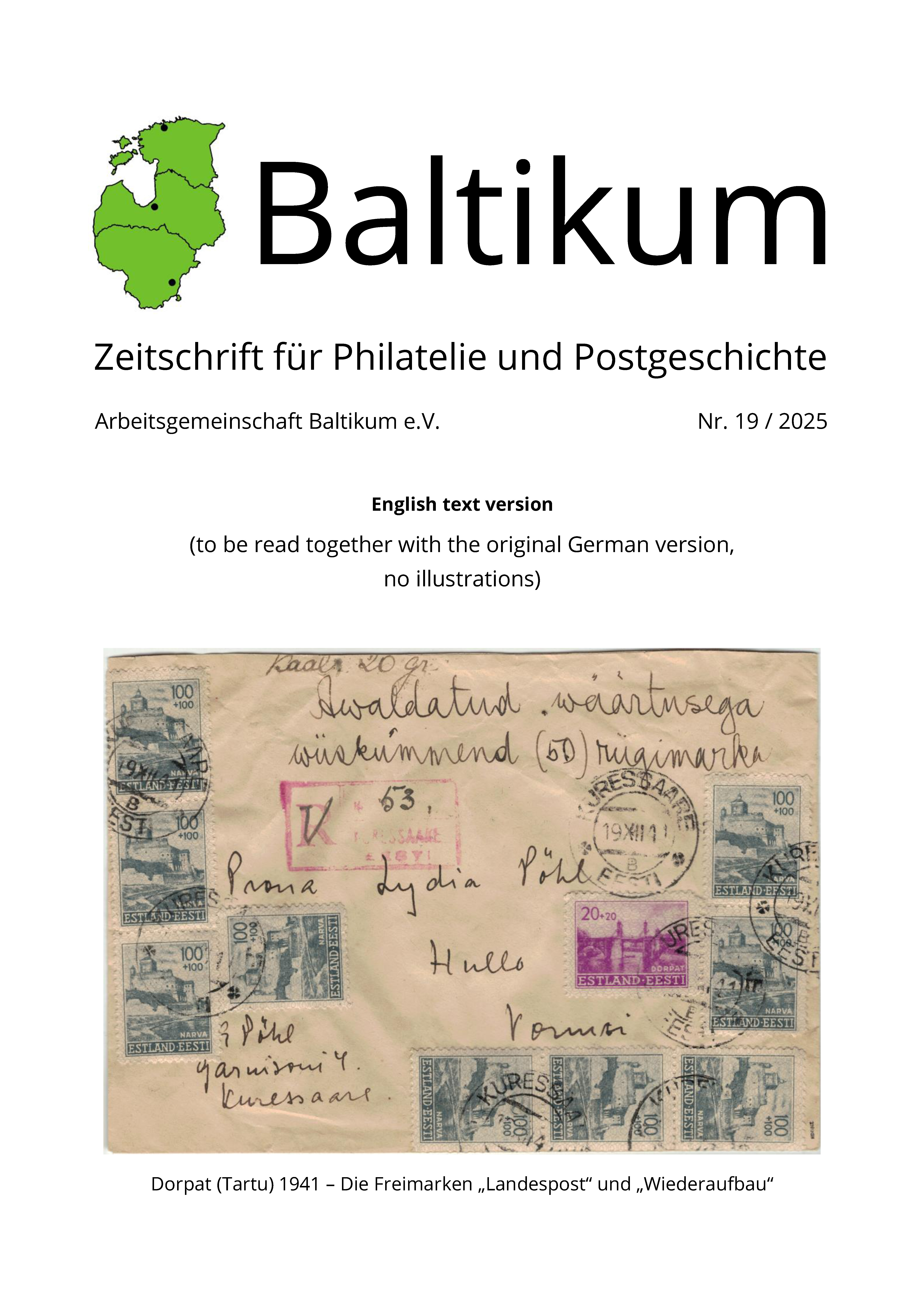 19 / 2025 in EnglishDorpat (Tartu) 1941 The Definite Stamps "Landespost" and "Wiederaufbau" (Thomas Löbbering) May 2025 |