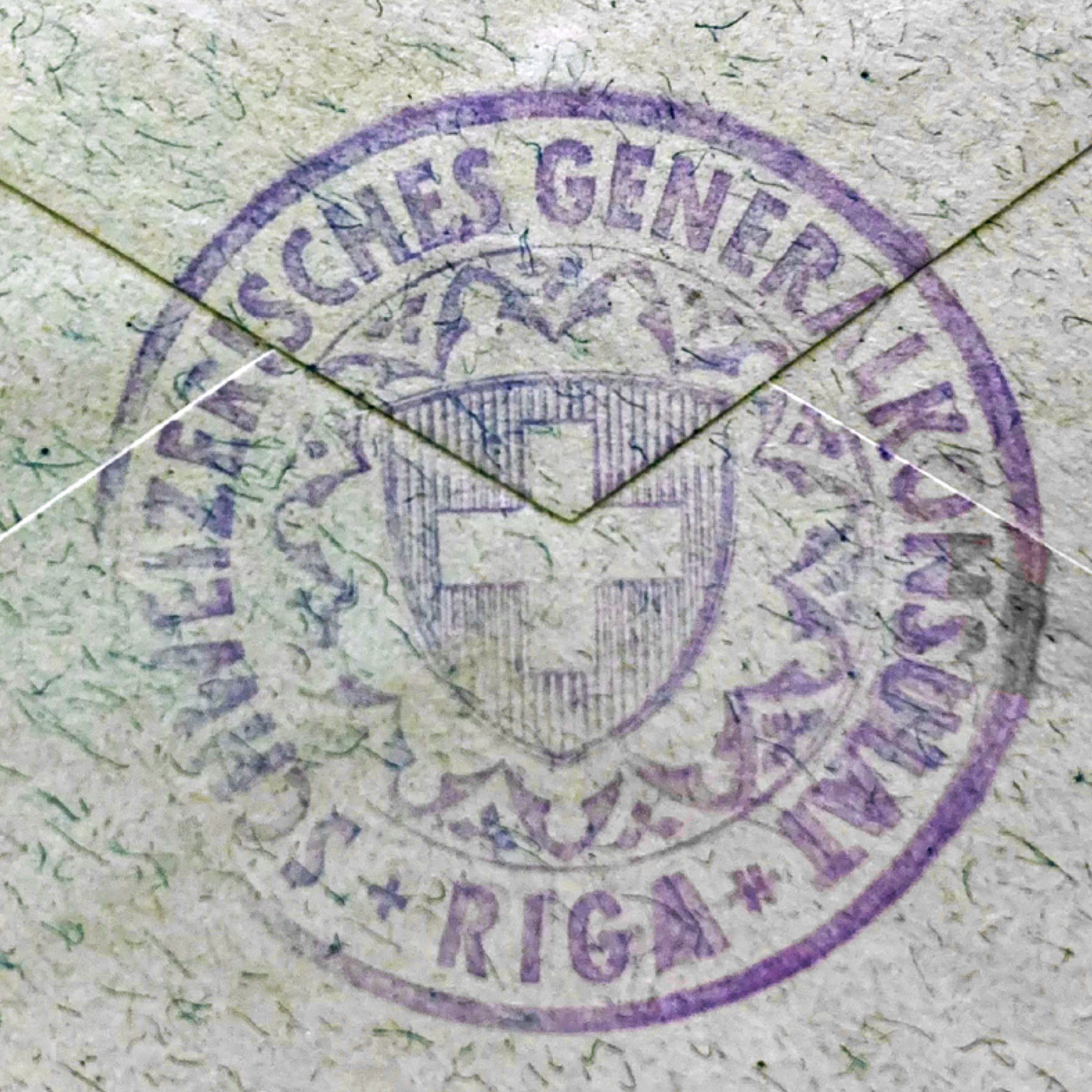After a pleasant New Year's chat, Olaf Hoffmann showed us some of his new acquisitions. In addition to a document from a place with a direct family connection (which will be published in the future), a letter from the Swiss Consulate General in Riga to Switzerland was of particular interest. According to official sources, there was a consulate in Riga until 1940 (but no consulate general). However, the stamp on the back proves that there was one.